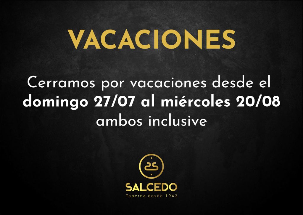 Hoy en día, TABERNA SALCEDO, en su nueva ubicación y bajo la dirección de José Luis y Pedro Salcedo, continúa con la tradición familiar ofreciendo los mismos platos cocinados durante las tres generaciones. Una cocina rica y variada que utiliza productos de máxima calidad trabajados con la mejor profesionalidad. Conjuga desde los platos tradicionales cordobeses que elaboraron los fundadores: Huevos con salmorejo y mayonesa, medallones japuta y callos… Hasta los más actuales realizados con receta propia: Revuelto de la casa, berenjena frita, rabos de toro, bacalao con tomate y araña… entre otros. Cuenta también con una extensa y cuidada carta de los mejores vinos de las distintas denominaciones de origen existente en el país.